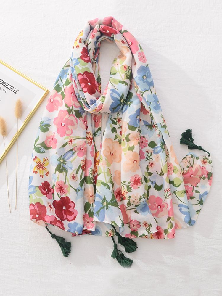 Cotton Linen Women Silk Scarf Soft Floral Tassel Shawl Foulard Femme Mujer Pareo Muffler Bufanda Stoles Hijab Bandana Summer