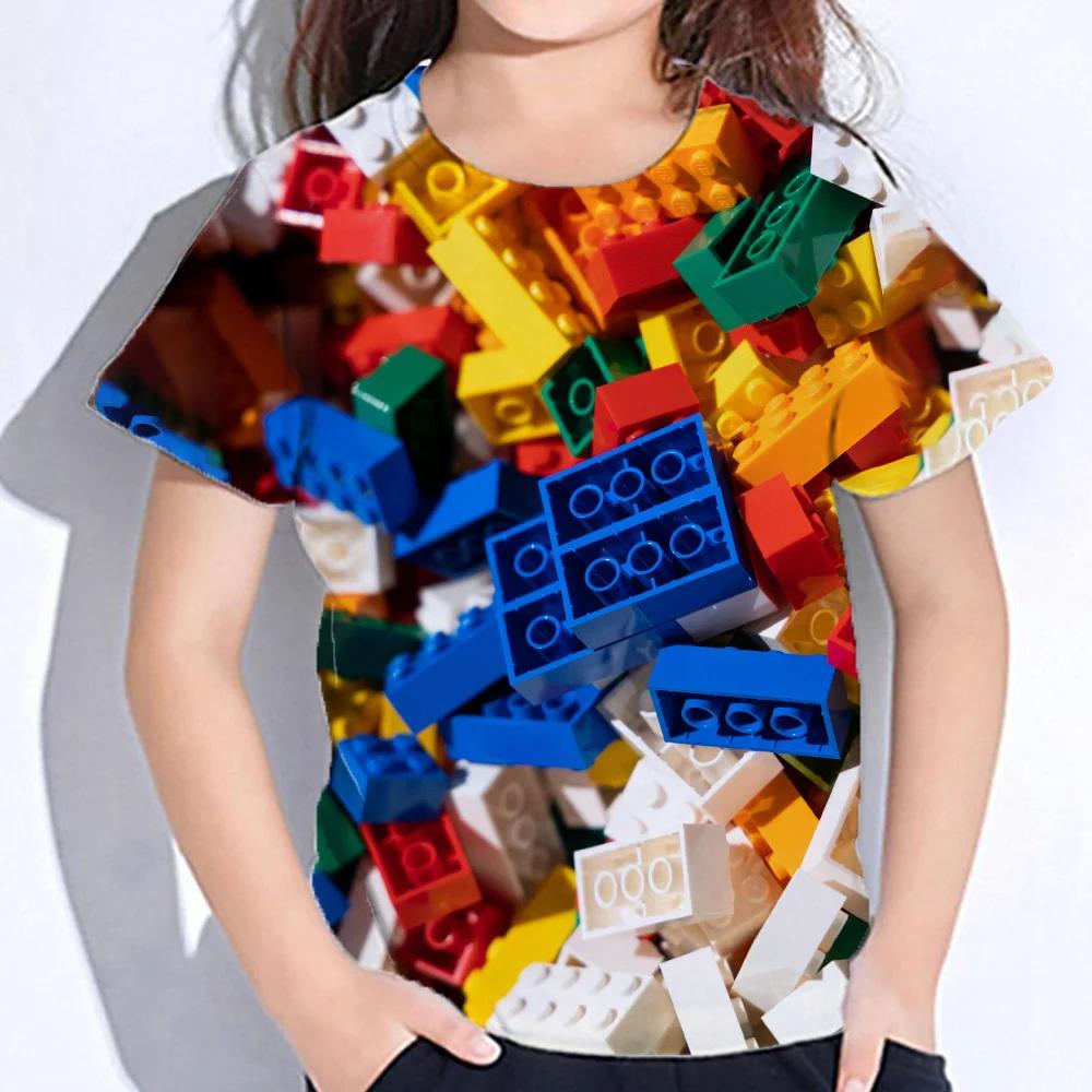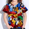 3D Colourful Bricks Short Sleeve Tshirts Summer Children's Boy's Clothing T-Shirt For Girls Kids Clothes Fashion 2026 Tees Tops