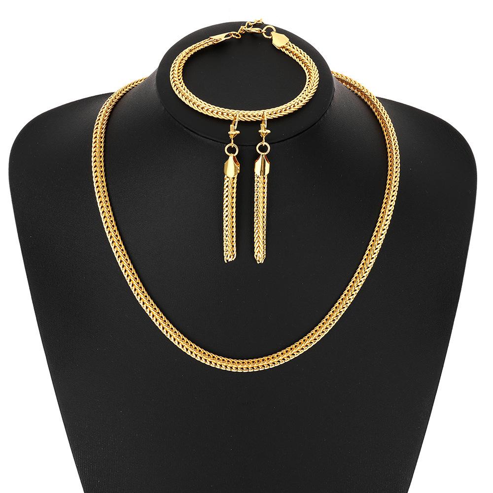 Women's Minimalist Gold-Toned Foxtail Chain Jewelry Set – Necklace, Bracelet, and Earrings In European and American Style