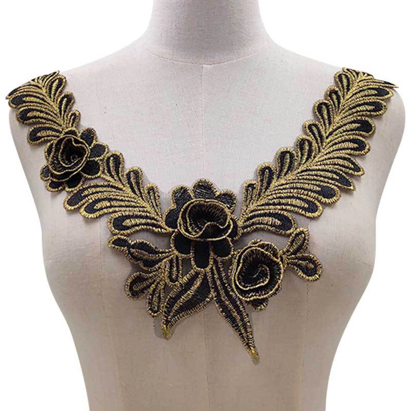 Water-soluble Lace Collar, Gold Thread Collar, Net Bottom Embroidery Corsage DIY Lace Accessories, Black Gold, Decal