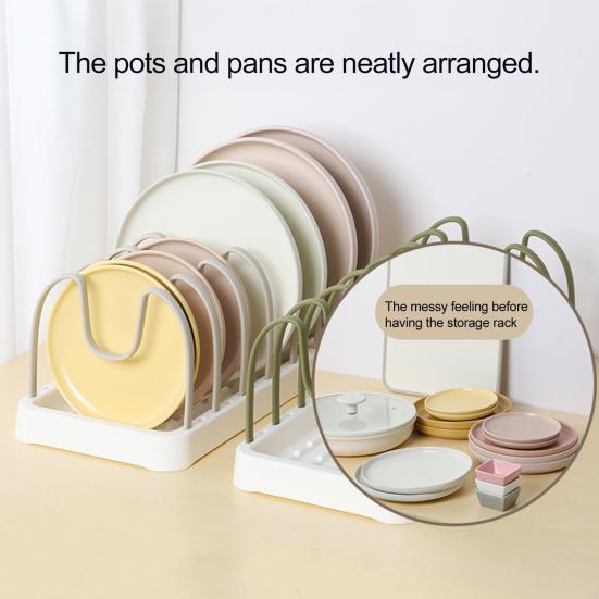 Anti-slide Pot Lid Holder: The rack securely accommodates dinner plates and pot lids of different sizes. Its concave design prevents lids from sliding off, ensuring stability and safety while organizing your kitchenware efficiently.
