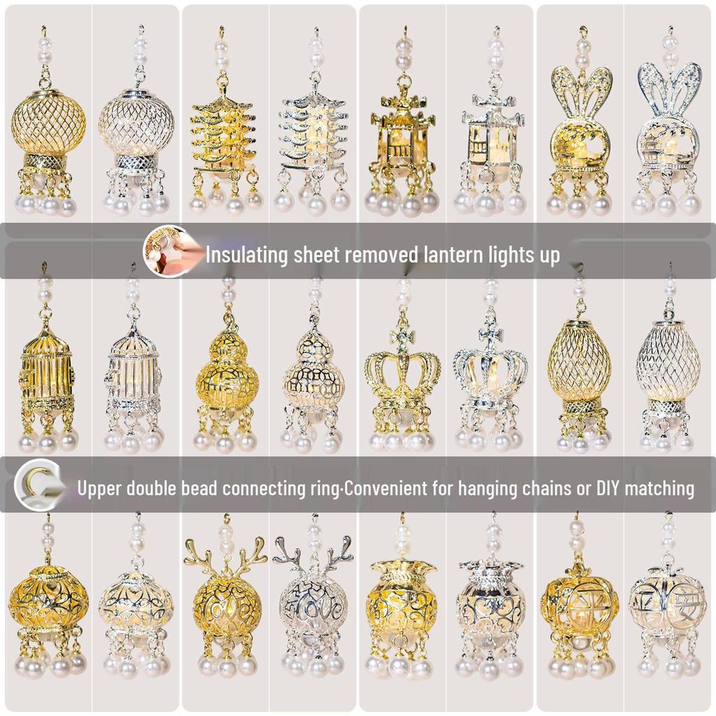 Luminous DIY Palace Lantern Fan Pendant Magnet Keychain Ornament - Ancient Style Accessory