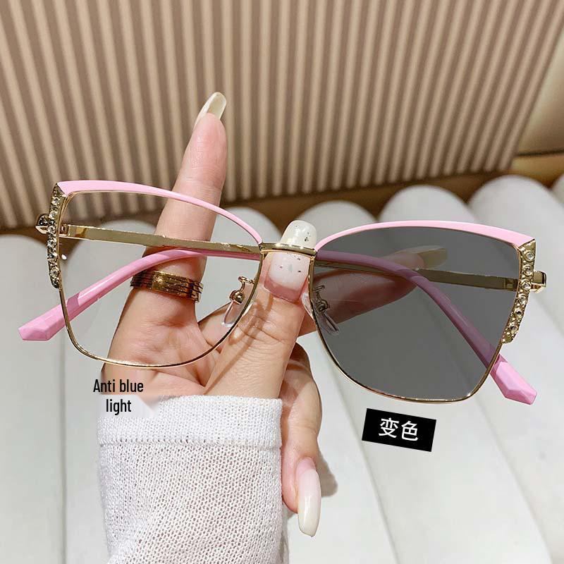 Women's Cat-Eye Rhinestone Eyeglass Frames: Trendy Photochromic & Anti-Blue Light Glasses