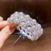 Retro French-Style Diamond and Pearl Open Bangle Bracelet