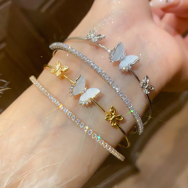Exquisite Zircon Butterfly Double-Layer Open Bangle Bracelet
