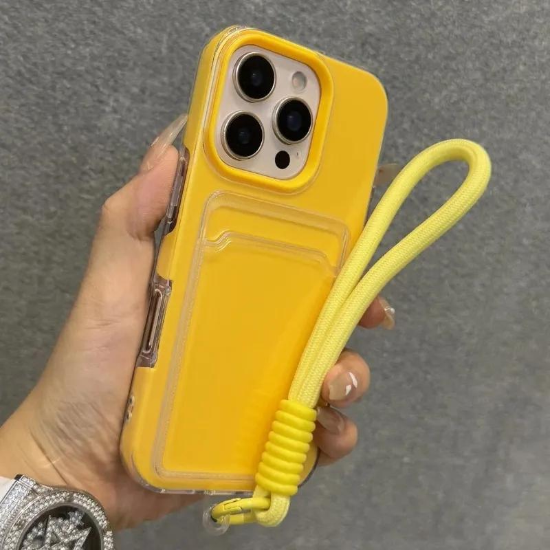 Wrist Strap Card Slot Po Clip Soft Shockproof Case For iPhone 17 16 15 14 Plus 13 12 Pro Max 11 Candy Color Lanyard Cover
