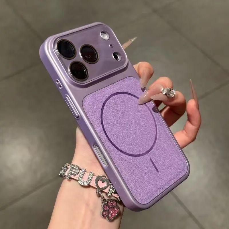 Luxury Lychee Leather Texture Phone Case For iPhone 17 16 15 14 13 Pro Max 17Pro For Magsafe Magnetic Camera Protection Cover