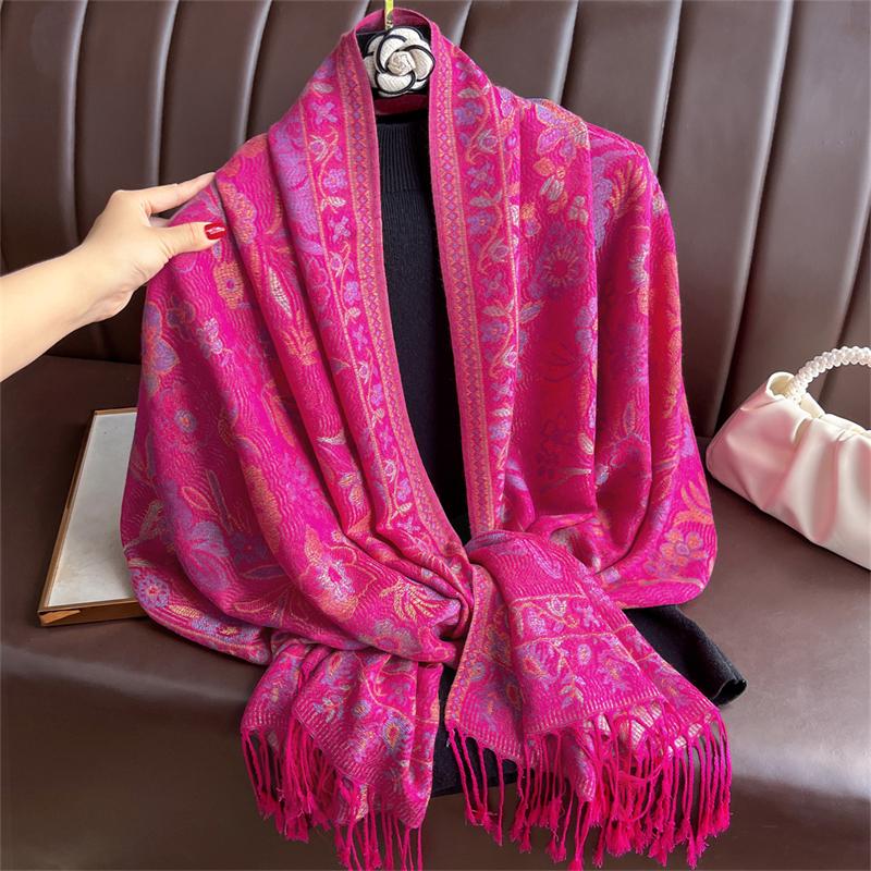 Winter Cashmere Pashmina Women Shawls And Wraps Women Floral Luxury Lady Warm Thick Scarves Blanket