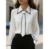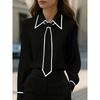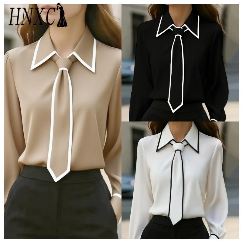 HNXC Women's Fashion Casual Solid Color Print Long Sleeve POLO Neck Blouses & Shirts