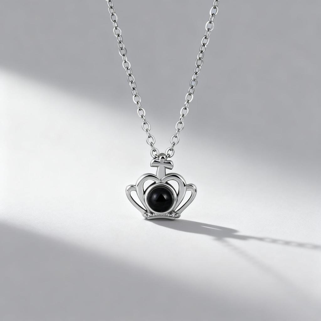 100 Languages 'I Love You' Crown Projection Necklace - Titanium Steel Clavicle Chain for Women