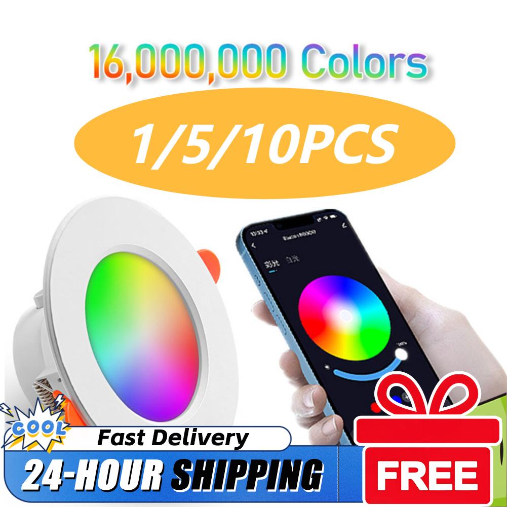 1/5/10PCS 10W RGB Smart Spotlight Bluetooth Ceiling Lamp RGB Lamp APP Remote Control Color Changing Light for Living Room Decor