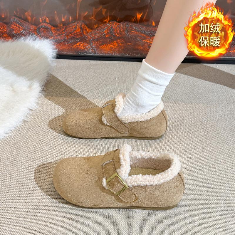 Fleece Thickened Versatile Thick-soled Snow Cotton Shoes Women's Warm Outer Birkenstock Fluffy Shoes