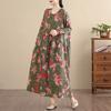 DIMANAF New 2026 Women Vintage Plus Size Spring Summer Long Dress Loose Oversize Long Sleeve Maxi Floral Print