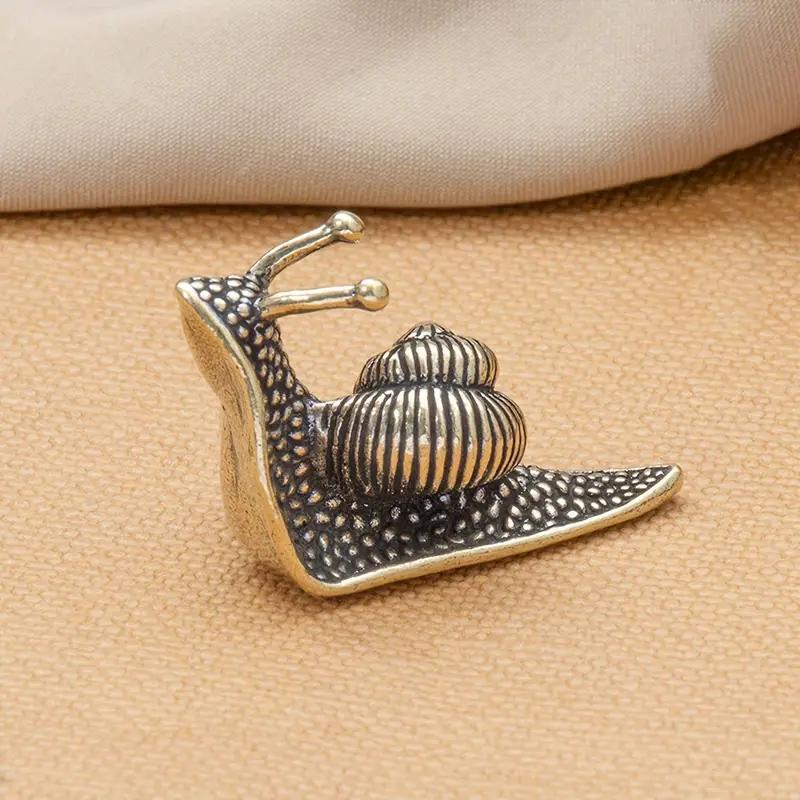 Brass Snail Animal Figurines Retro Pure Copper Mini Snail Statue Ornaments Desk Antique Brass Tea Pet Collection Home Decoration