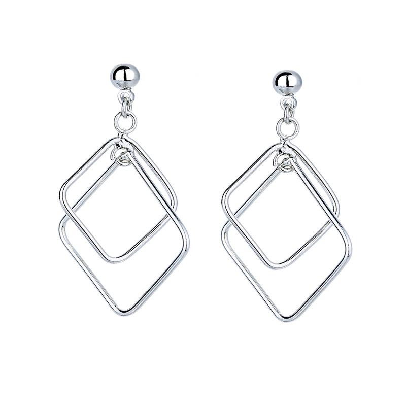Hollow Square Earrings Temperament Cold Wind Geometric Earrings Commuting Ol Plain Simple Box Earrings Girls