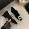 Premium Gray Thick Heel High Heel Square Head Rhinestone Single Shoes Women's Season Velvet Mary Jane Shoes
