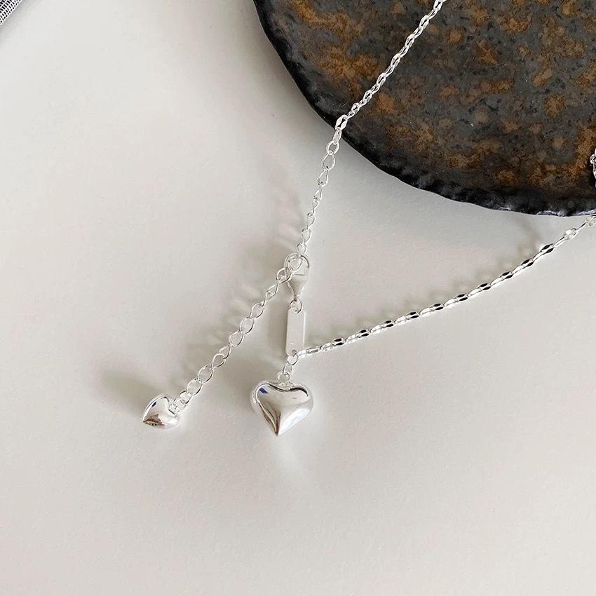 Sweet Double Heart Minimalist Necklace - Trendy & Versatile Clavicle Chain for Good Luck