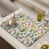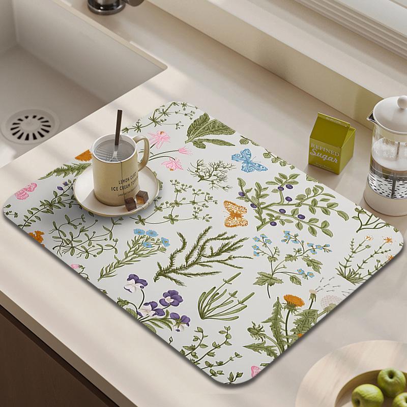Floral Diatomaceous Earth Countertop Drying Mat - Absorbent, Quick-Drying, Heat-Resistant, Easy-to-Clean, Dustproof Oven Placemat.