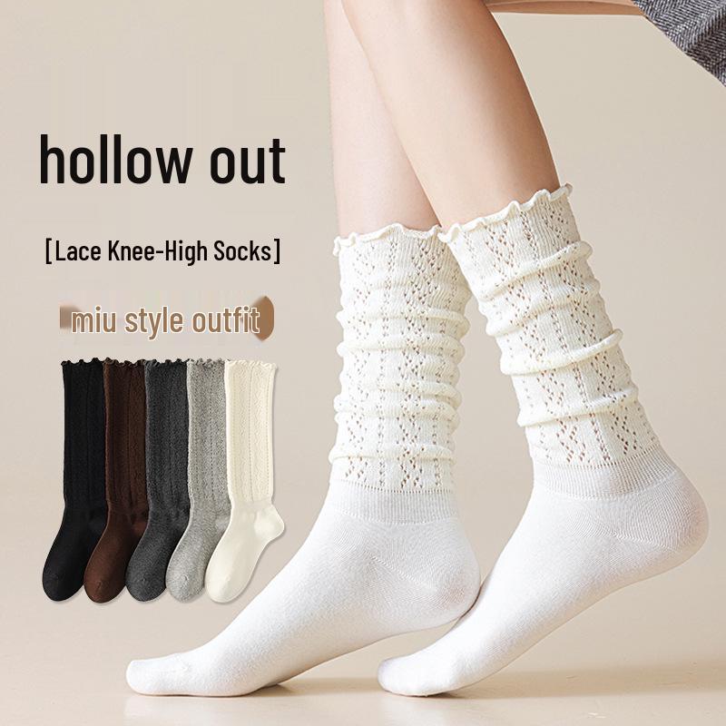 Chunky Knit Openwork Slouch Socks - Solid Color Calf & Over-the-Knee, Lace Miu Style, Anti-Slip Boneless Cotton Boot Socks