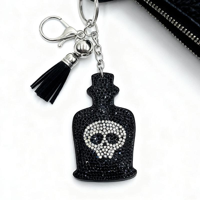 Add a touch of edgy elegance to your accessories with this stunning charm. Crafted with meticulous attention to detail, it features intricate rhinestone embellishments arranged in a captivating skull design. The addition of delicate tassels creates movement and flair, making it a perfect statement piece for your keys, bags, or even as a decorative touch to your favorite accessories. This charm is both stylish and versatile, making it an ideal gift for yourself or someone special.