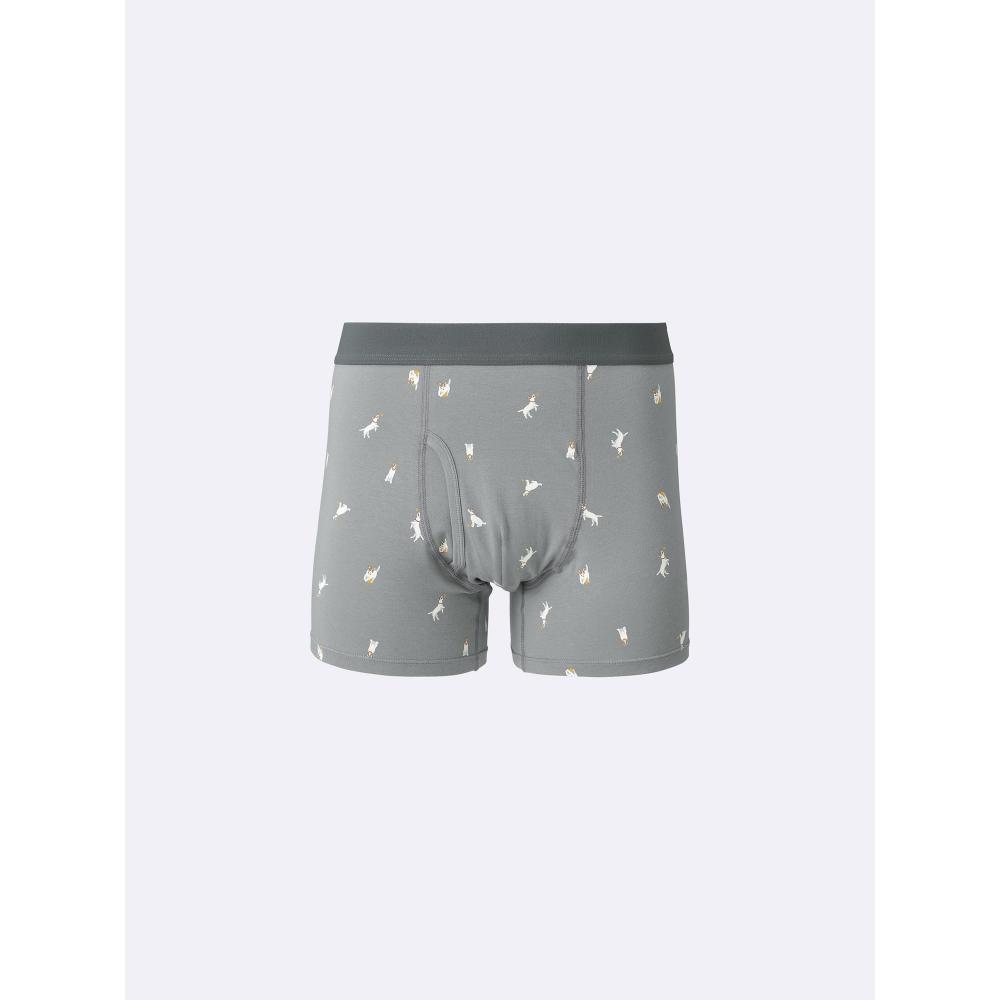 GU Boxer Shorts (Dog 2) is a men's regular boxer pants featuring a Dog 2 pattern. This product uses cotton material that feels good against the skin, providing a comfortable fit and includes convenient button details at the front. It is recommended to use a neutral detergent to prevent color fading after washing.