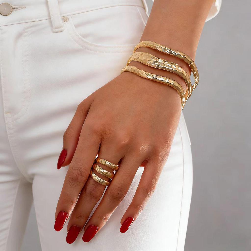 Cross-Border Fashion Hammered Texture Bracelet & Ring Set with Curved Lines and Multi-Layer Tin Foil Design
