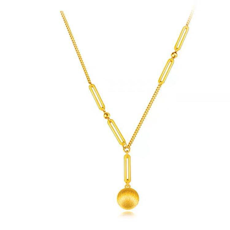 European and American Steel Bead Necklace with Paper Clip Chain - 18K Gold Frosted Stainless Steel Design