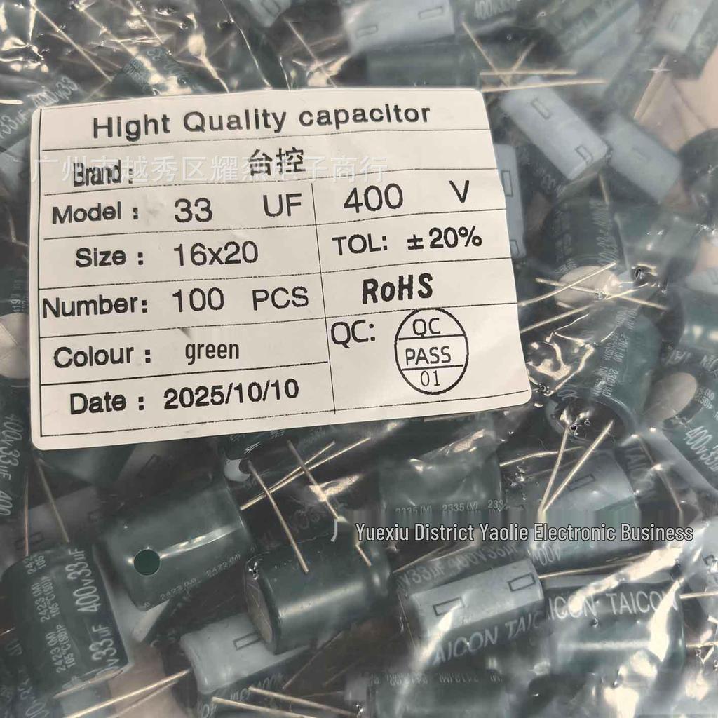 New TAICON 400V 33uF Electrolytic Capacitor for Power Supply Filtering & Amplifiers, Size: 16×20mm.