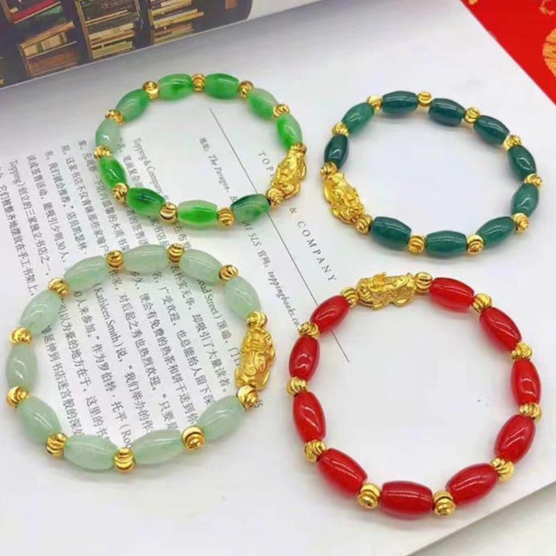 Vietnamese Sand Gold Jade Pixiu Bracelet for Men and Women - Copper Gold-Plated Beads, Imitation Hard Gold Pixiu Design.