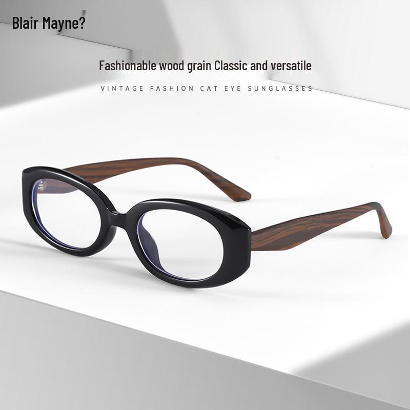 Retro Cat Eye Glasses with Wood Grain, Anti-Blue Light, Prescription Ready, for Women, Fits Square and Round Faces