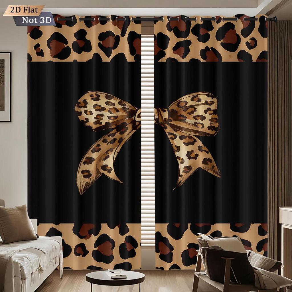 Custom Leopard Print Bowknot Blackout Curtains - Thick, High-Precision Sun Protection