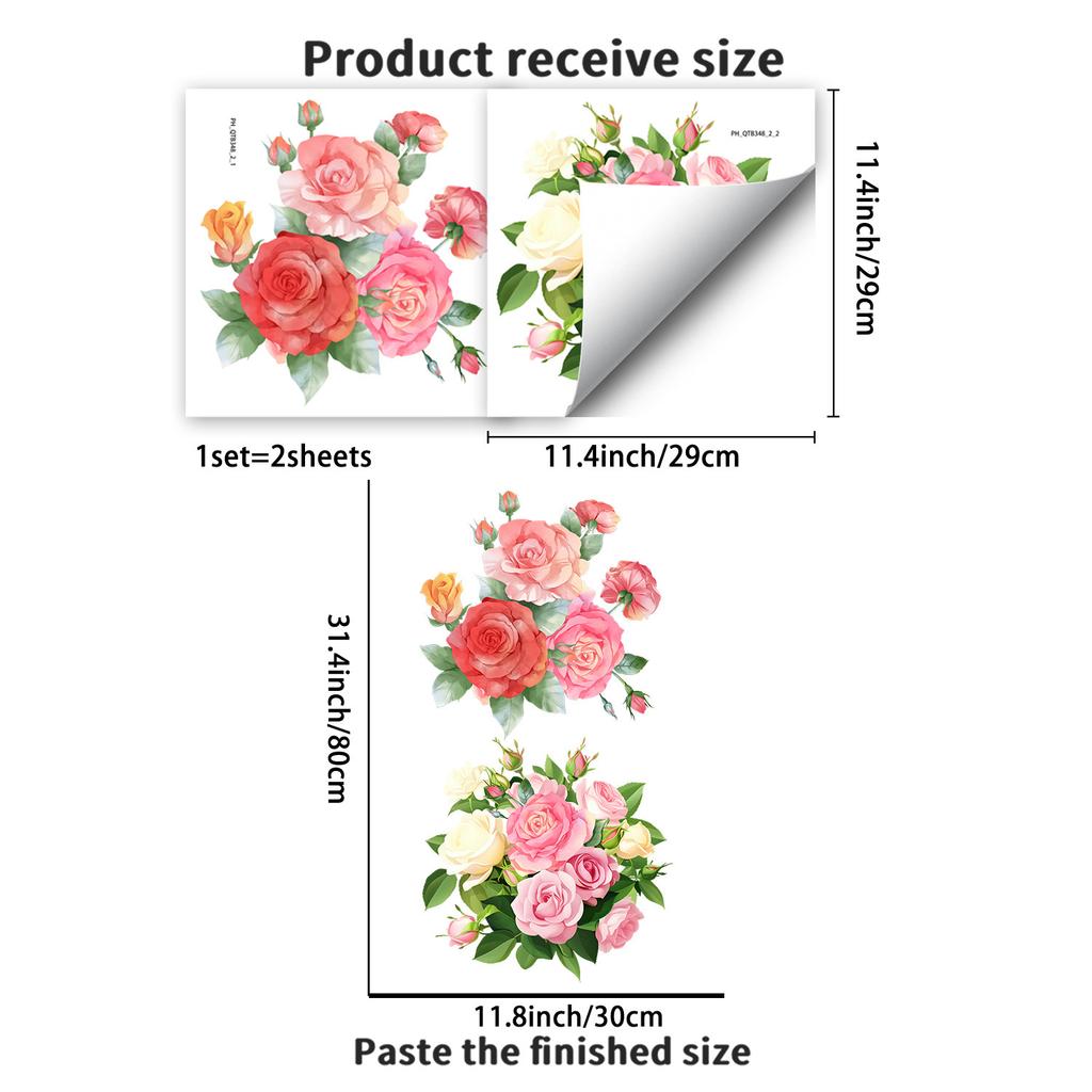 Hand Painted Pink White Flowers Toilet Sticker Self-Adhesive Removable for Bathroom Decoration