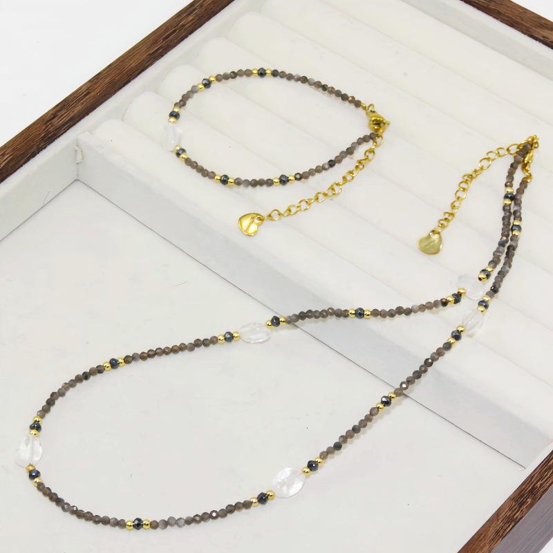 Autumn/Winter Smoky Gray Agate Beaded Necklace Chain