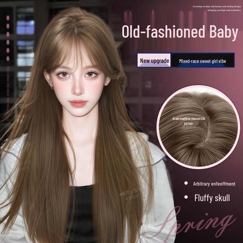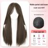 Long Straight Black Wig Set: Natural Hair, Full Head, Fashionable & Age-Reducing.