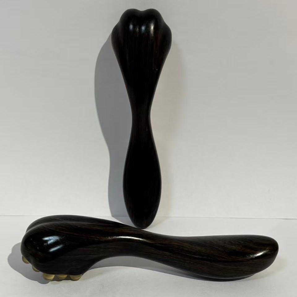 Ruyi Purple Sandalwood Eye Massager & Sheep Horn Gua Sha Stick with Cat Paw Meridian Comb