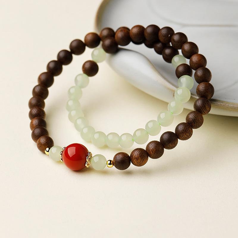Agarwood & Hetian Jade Women's Bracelet Gift: Half Mountain Half Water Design with Lucky Southern Red Beads