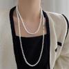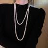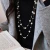 French Pearl Layered Sweater Chain: Women's High-End Starry Necklace for Chic Style