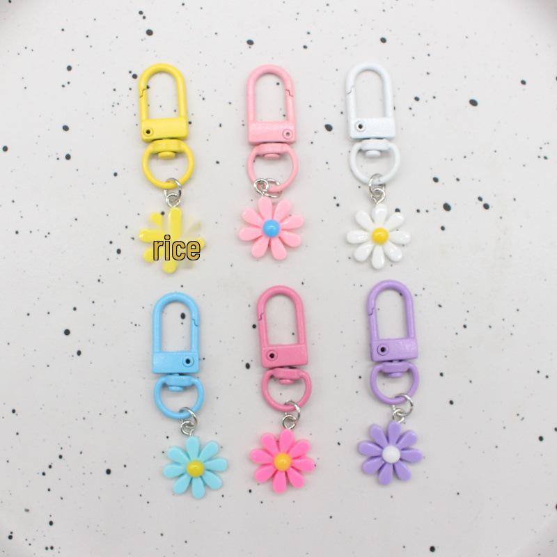 Colorful Daisy Revolving Door Keychain: Cute Heart Bag Charm Pendant