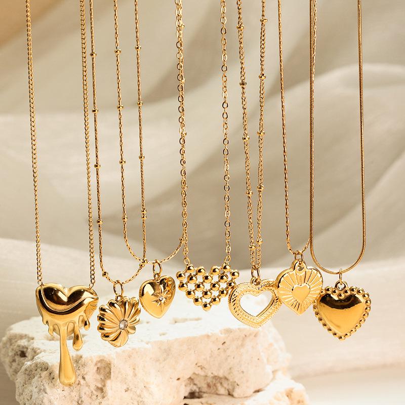Stainless Steel Gold-Plated Love Heart Necklace with Inlaid Diamonds