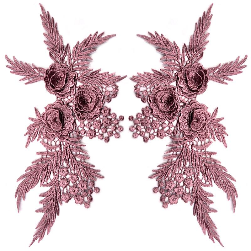 Water Soluble Lace Three-dimensional 3D Decal Symmetrical Cloth Sticker Hollow Polyester Light Embroidery Pair of Flowers DIY Lace Clothing Accessorie
