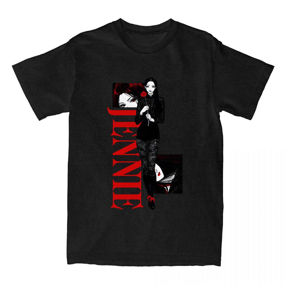 Back To School Anime Black Tee Jennie Korean Singer Tshirts Cotton Short Sleeve T-shirt Unisex Top