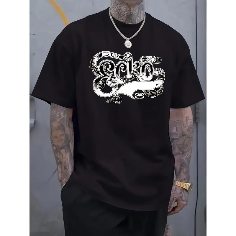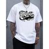 European Sizes Men'S Casual Graphic T-Shirt - White, Short Sleeve, Crew Neck, Summer Style, Regular Fit, Tattoo-Inspired Design