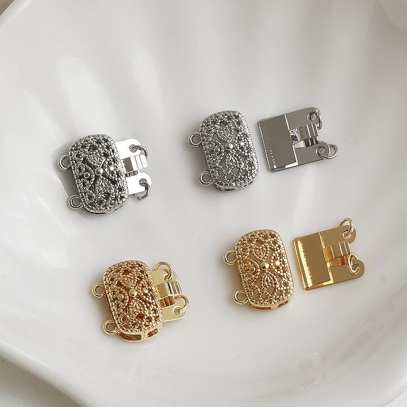 14K Gold-Filled Hollow Rectangle Double Row Clasp for Pearl Necklaces - DIY Jewelry Accessory