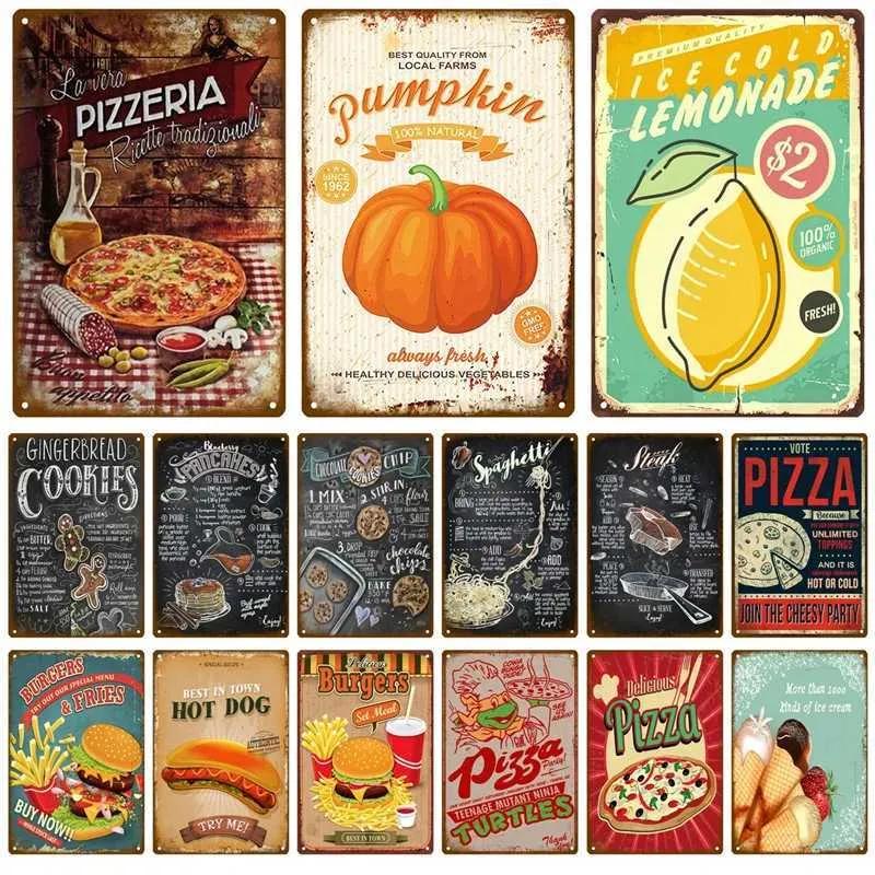 Metal Signs Exquisite Fast Food Boards Tin Sign Boards Vintage Restaurants Home Bars Cafes Kitchens Metal Posters Wall Decoration Accessories