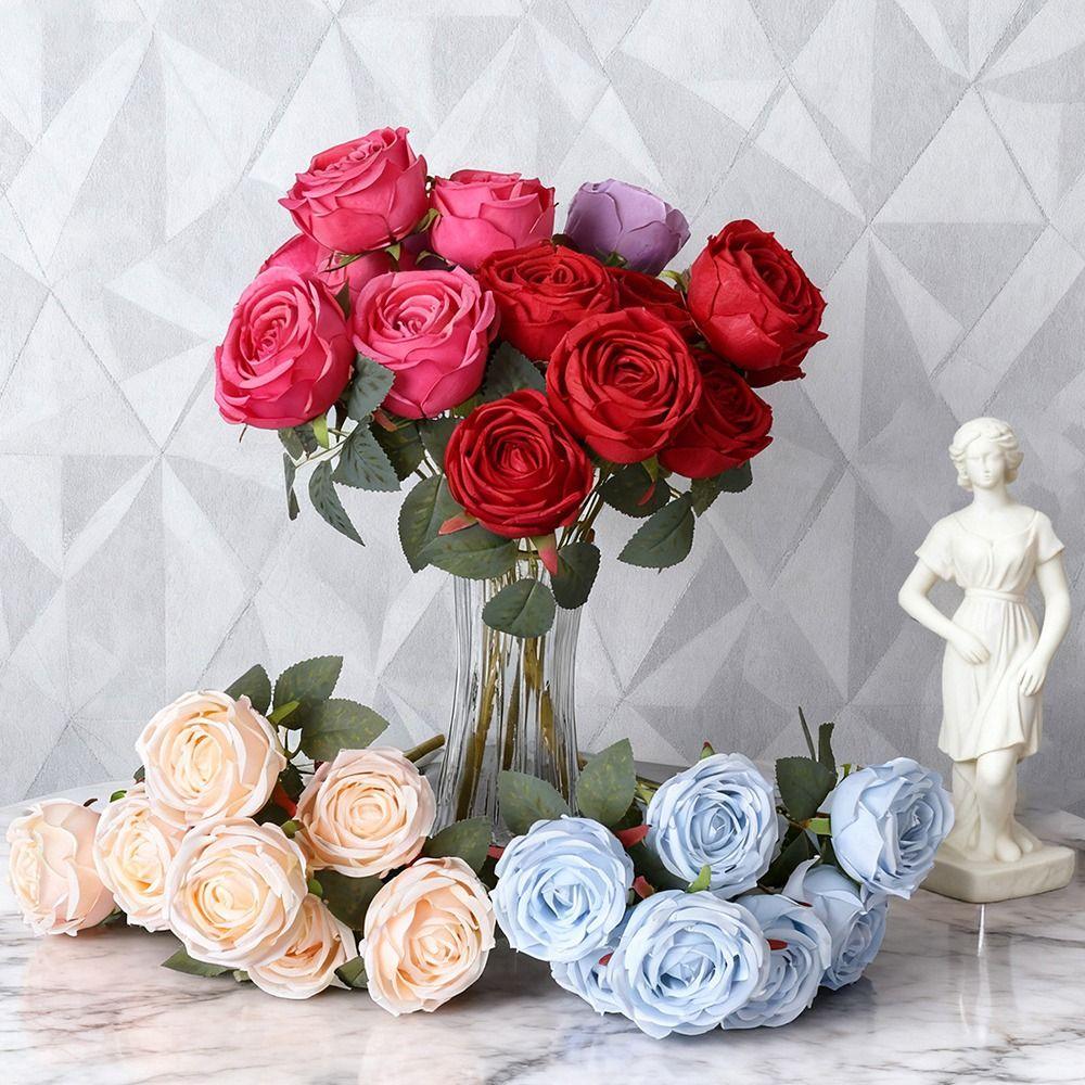 Multicolor Artifcial Rose Flower 7 Heads Photo Props Simulation Rose Flower DIY Green Leaves Faux Flower Rose Party Supplies