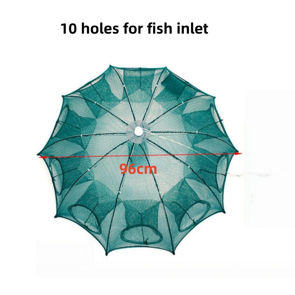 10-hole Portable Fishing Net - Durable Nylon Shrimp, Crab and Fish Catching Tool, Suitable for Outdoor Fishing Adventures.