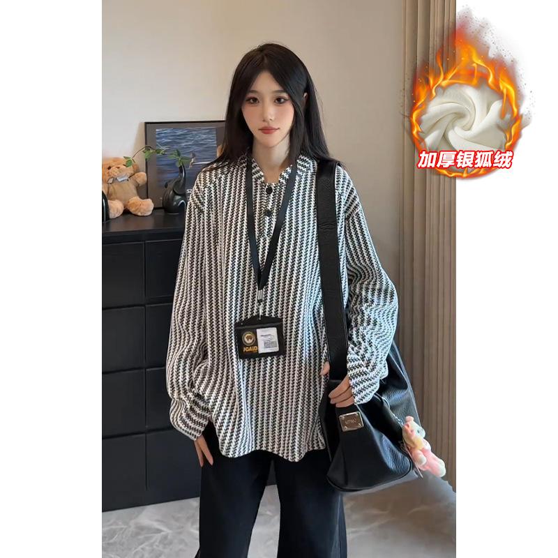 Men's Black & White Striped Oversized Shirt Casual Loose Long Sleeve Blouse