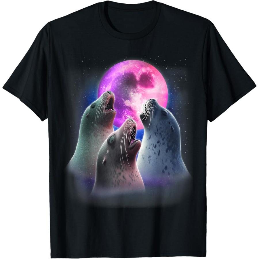 3 Seals Howling At The Moon Funny Seal Sea Lion Animal Lover T-Shirt