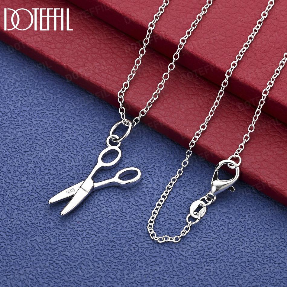 925 Sterling Silver Wedding Gift Scissor Shape Pendant Necklace Fashion Jewelry