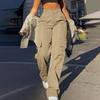 Women's Street Fashion Multi-Pocket Cargo Straight Leg High Waist Slim Fit Work Pants
